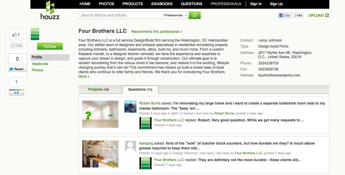 After the success of our Four Brothers Carpentry photo gallery on our website, we’ve decided to join Houzz.com to share even more photos with you! Our team plans to continue utilizing our existing photo gallery, but this interactive website allows us to post countless project photos by project, and allows you to post your home renovation questions for one of our design or construction experts to answer.