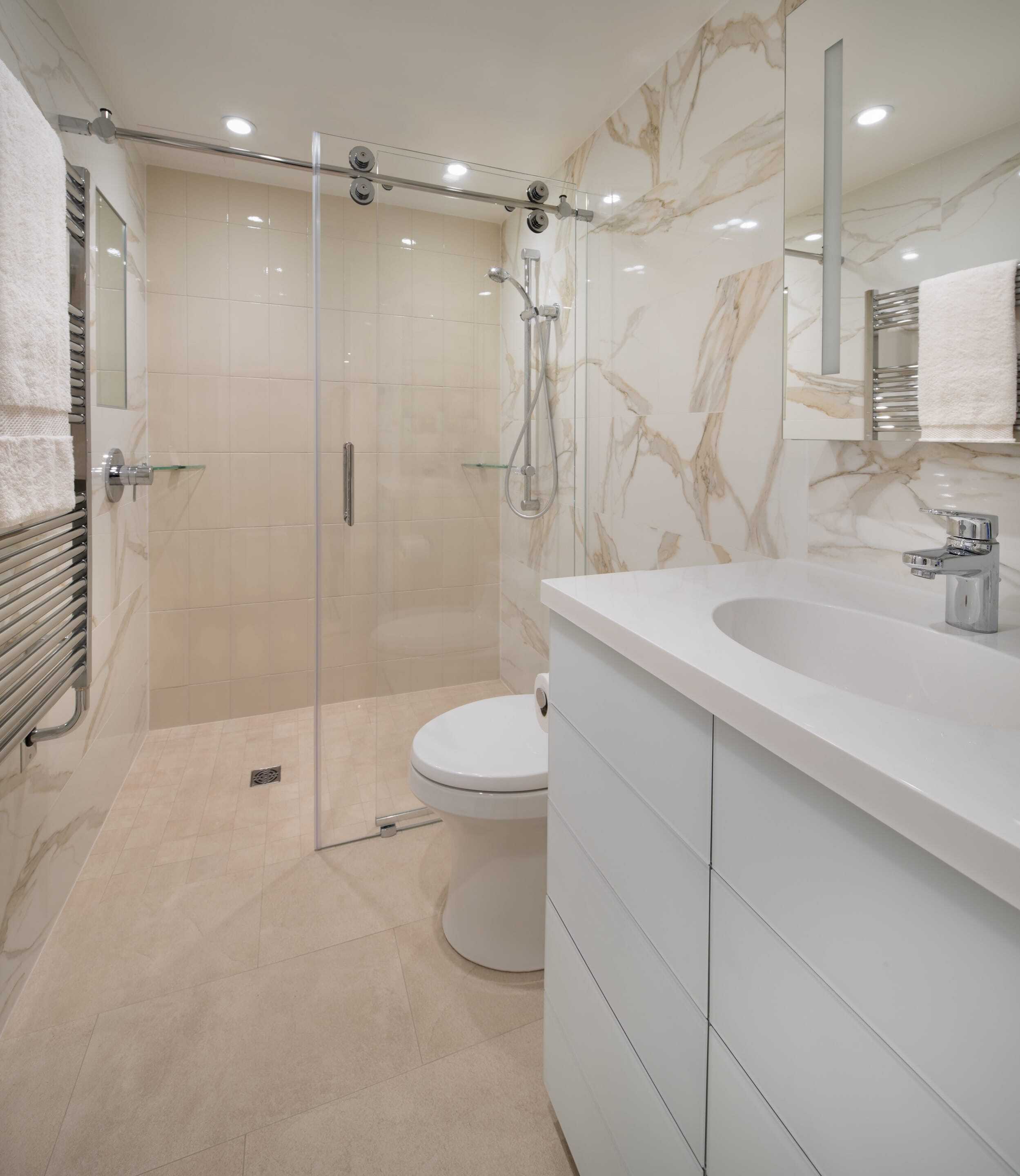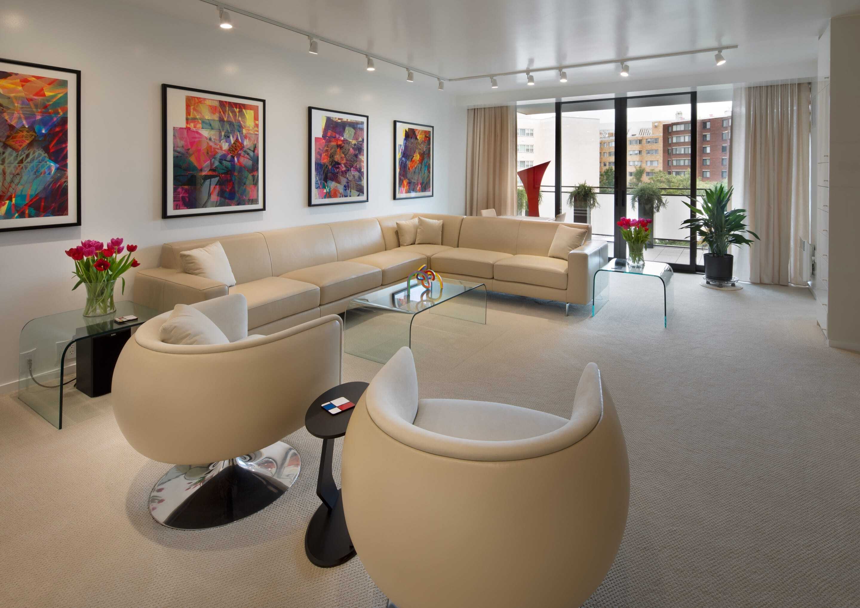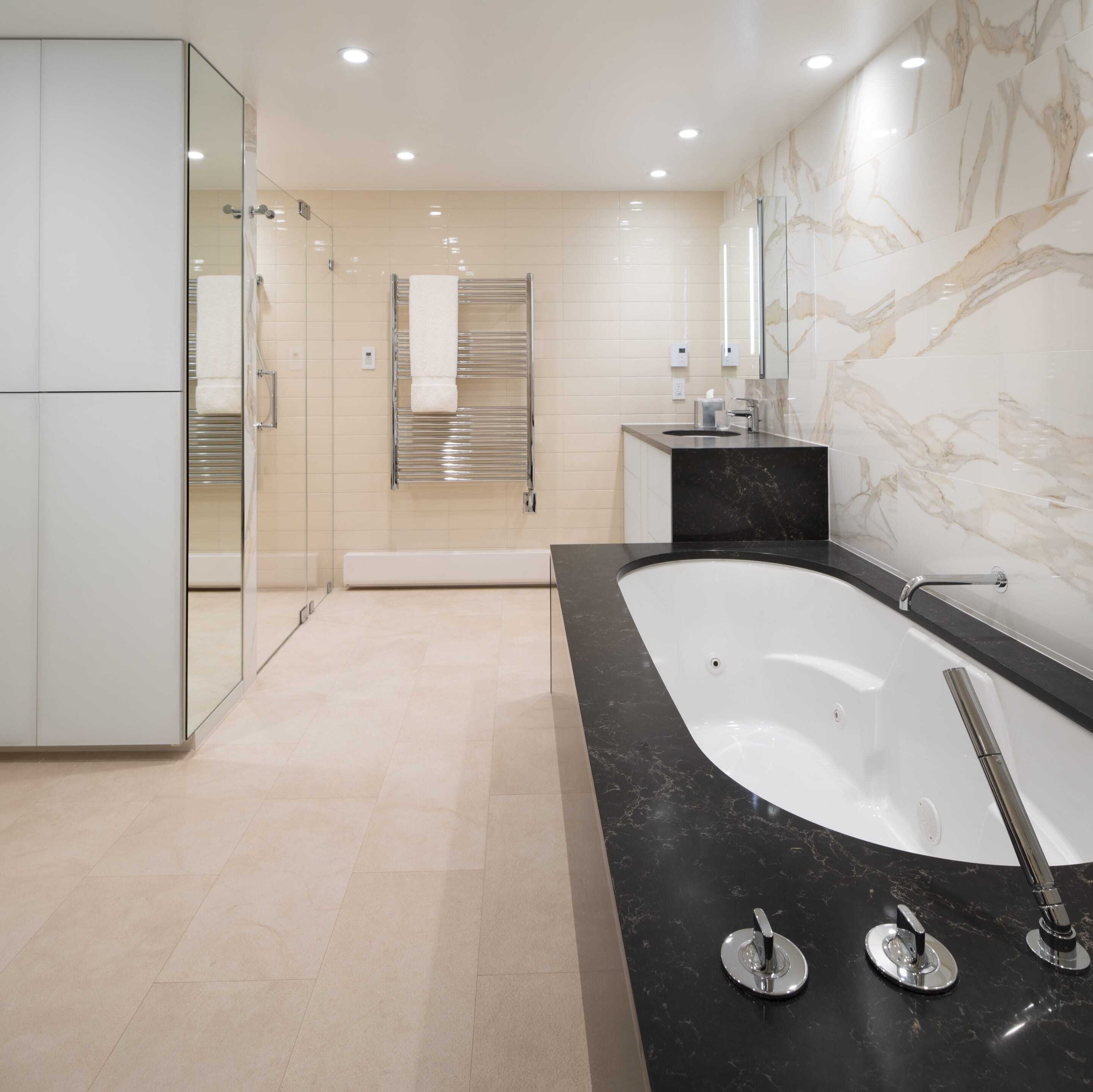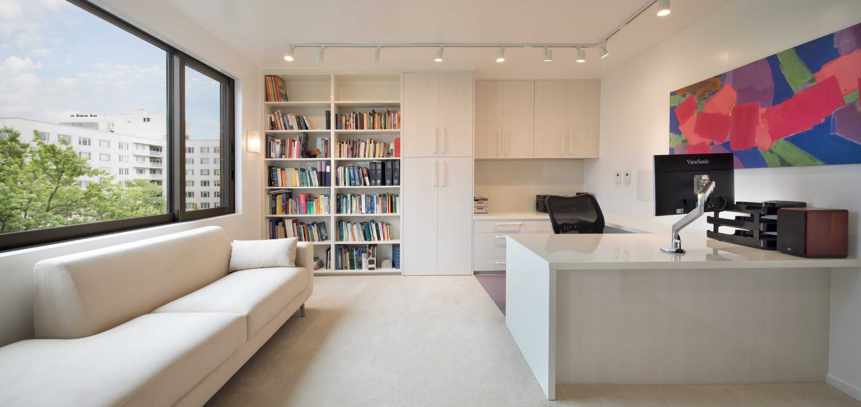 Located in the historic Foggy Bottom neighborhood of Northwest Washington, DC, our clients selected this downtown condo for its incredible view of the city, including Georgetown and the Potomac River waterfront. They selected Four Brothers to frame this view and carry it throughout the rest of their home. The existing condominium unit was in excellent shape, but wasn’t a perfect fit for our client’s wants and lifestyle. Both currently professors, it was important they each have a comfortable office space to work from when home. Additionally, the master bathroom, 3/4 bathroom, and powder rooms would all require substantial updates in terms of aesthetic, layout, and accessibility.