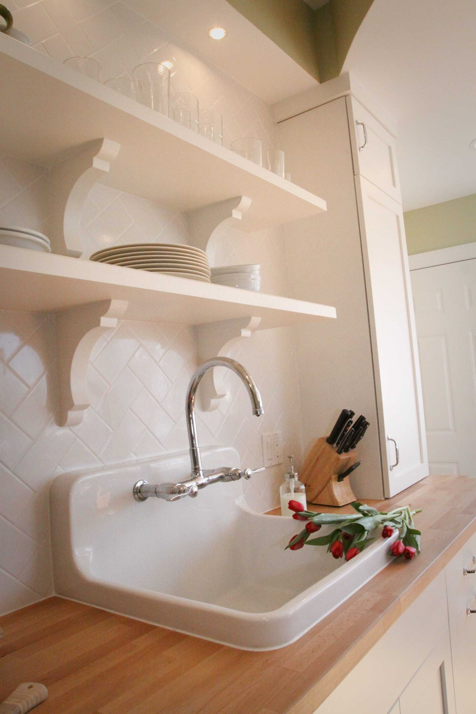 Going into the project, there was never a question as to the style the clients desired. They wanted a farmhouse kitchen with white cabinetry (shaker style doors), butcher-block countertops, large white sink, and the original heart-pine floors.
